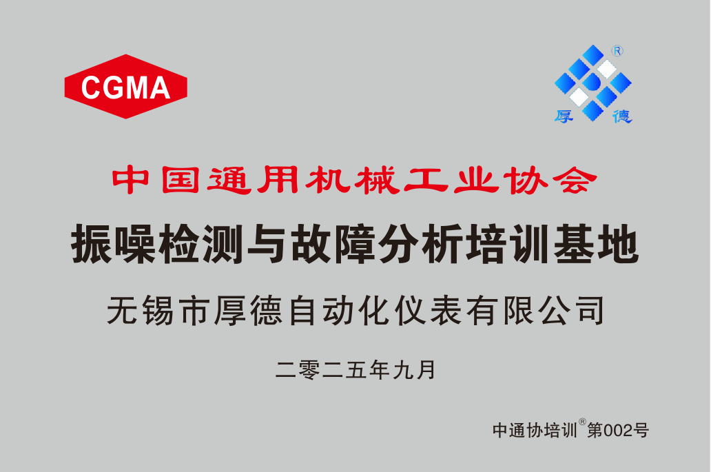 经中国通用机械工业协会评定,我司正式获授“振噪检测与故障分析培训基地”。