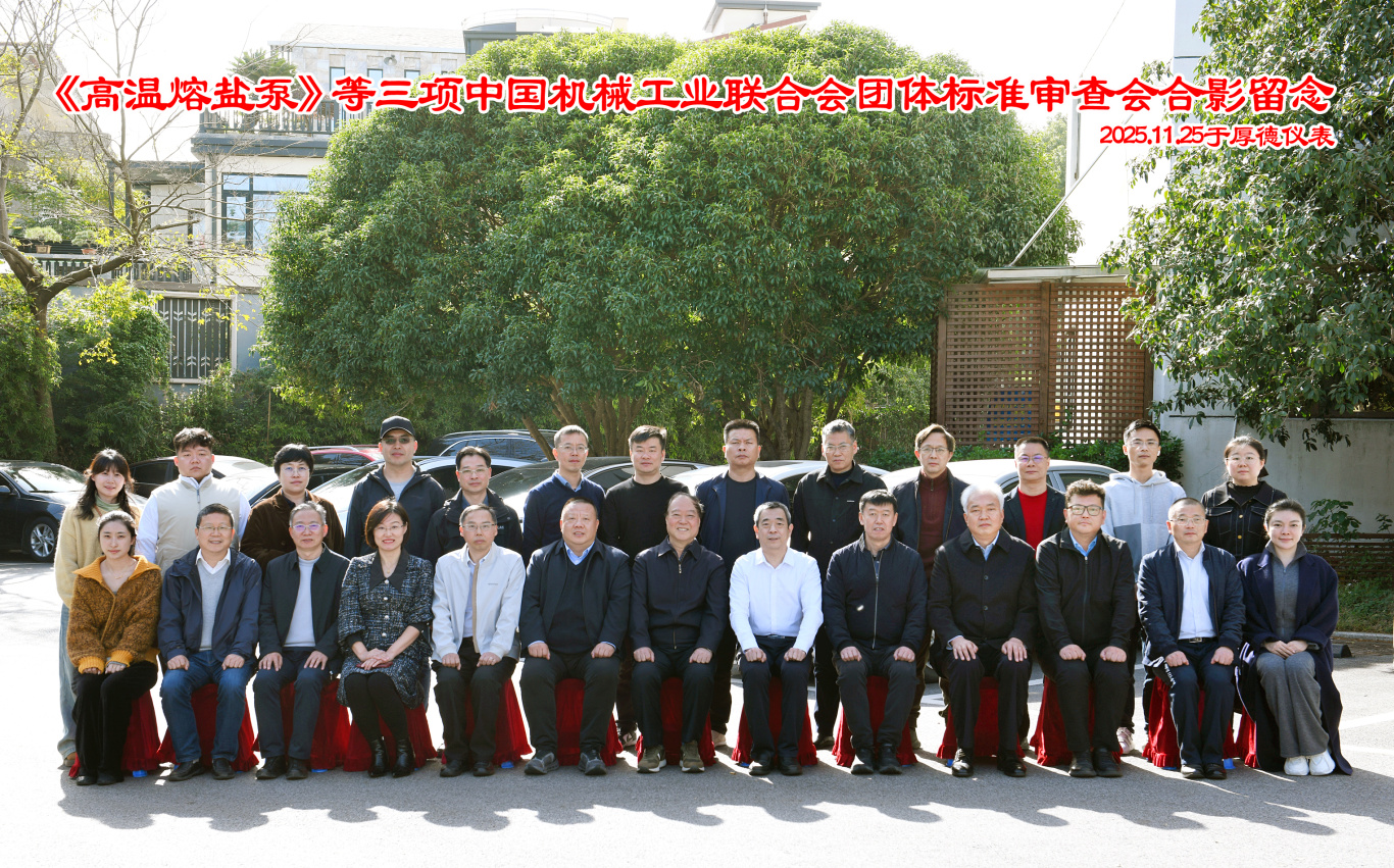 2025年11月24-25日,由中国机械工业联合会主办、无锡市厚德自动化仪表有限公司承办的《高温熔盐泵》等三项中国机械工业联合会团体标准审查会在无锡顺利召开